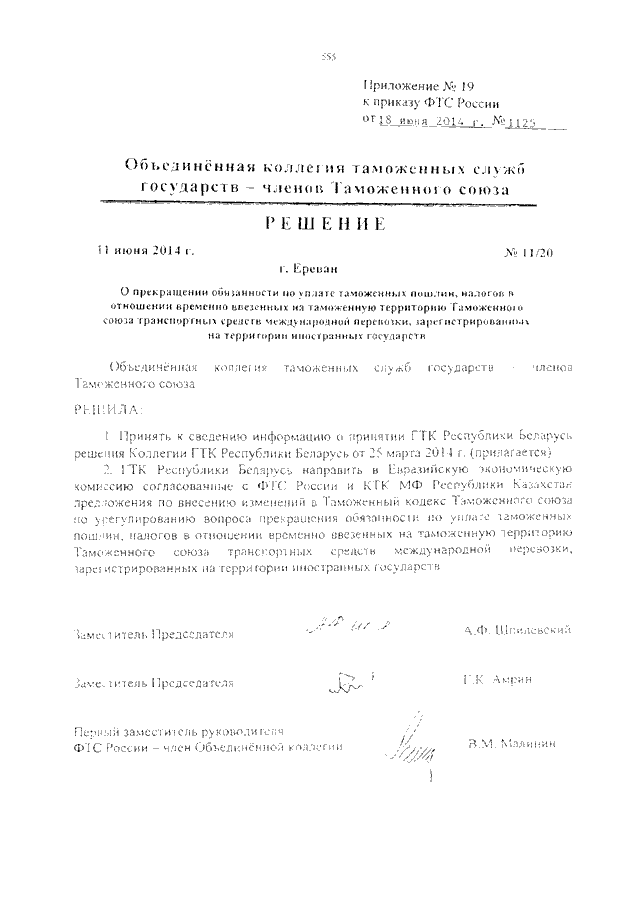 (вместе с РЕШЕНИЯМИ Объединенной коллегии таможенных служб государств - членов Таможенного союза от 11.06.2014 N 11/1, N 11/2, N 11/3, N 11/4, N 11/6, N 11/7, N 11/8, N 11/9, N 11/10, N 11/11, N 11/12, N 11/13, N 11/14, N 11/15, N 11/16, N 11/17, N 11/18, N 11/19, N 11/20, N 11/21, N 11/22, N 11/23)