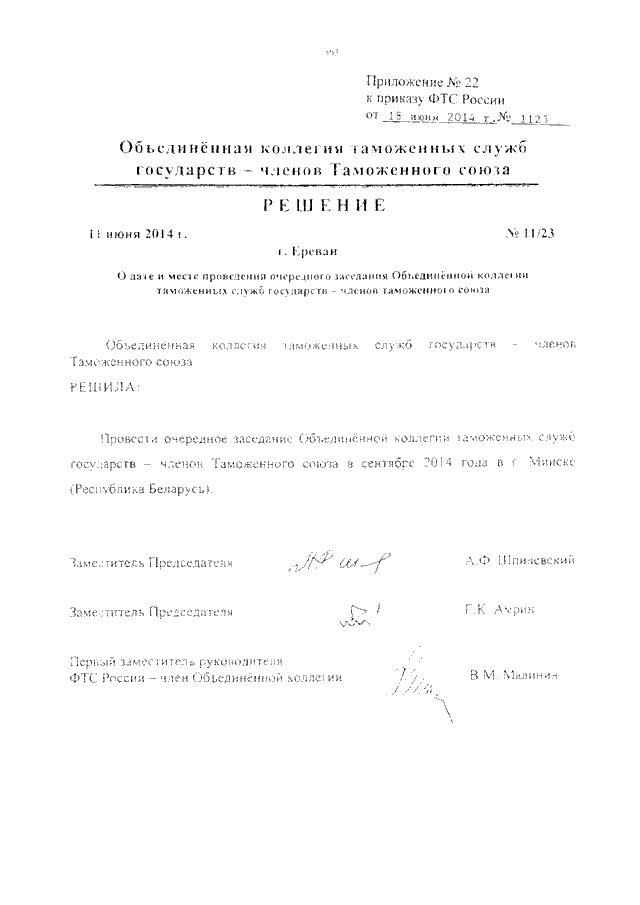 (вместе с РЕШЕНИЯМИ Объединенной коллегии таможенных служб государств - членов Таможенного союза от 11.06.2014 N 11/1, N 11/2, N 11/3, N 11/4, N 11/6, N 11/7, N 11/8, N 11/9, N 11/10, N 11/11, N 11/12, N 11/13, N 11/14, N 11/15, N 11/16, N 11/17, N 11/18, N 11/19, N 11/20, N 11/21, N 11/22, N 11/23)