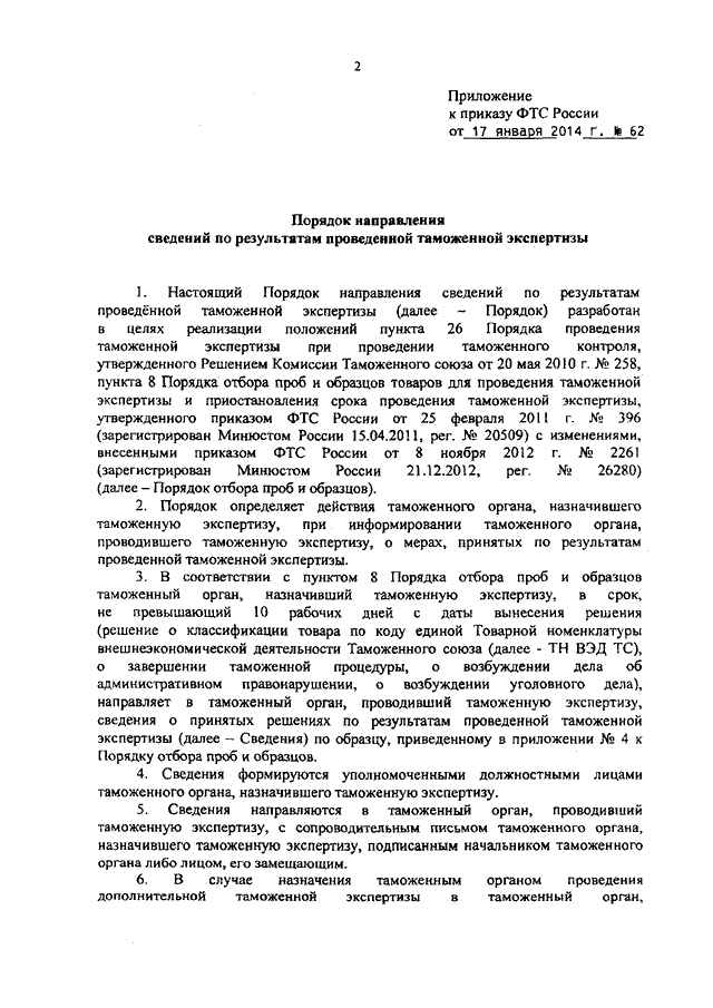 ПРИКАЗ ФТС РФ от 17.01.2014 N 62