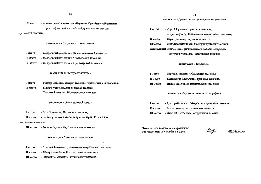 "ОБ ИТОГАХ 15-ГО СМОТРА - КОНКУРСА САМОДЕЯТЕЛЬНОГО ХУДОЖЕСТВЕННОГО ТВОРЧЕСТВА В ТАМОЖЕННЫХ ОРГАНАХ РОССИЙСКОЙ ФЕДЕРАЦИИ"
