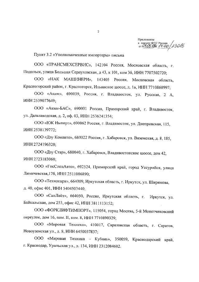 ПИСЬМО ФТС РФ от 03.05.2017 N 14-40/23016