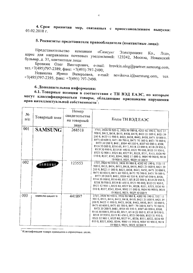 "О ТОВАРНЫХ ЗНАКАХ КОМПАНИИ "SAMSUNG ELECTRONICS CO., LTD"