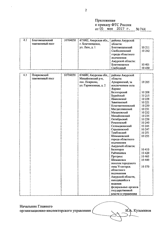 "ОБ ИЗМЕНЕНИИ РЕГИОНОВ ДЕЯТЕЛЬНОСТИ ПОЯРКОВСКОГО И БЛАГОВЕЩЕНСКОГО ТАМОЖЕННЫХ ПОСТОВ БЛАГОВЕЩЕНСКОЙ ТАМОЖНИ И О ВНЕСЕНИИ ИЗМЕНЕНИЙ В ПРИЛОЖЕНИЕ К ПРИКАЗУ ФТС РОССИИ ОТ 21 ДЕКАБРЯ 2015 Г. N 2621"