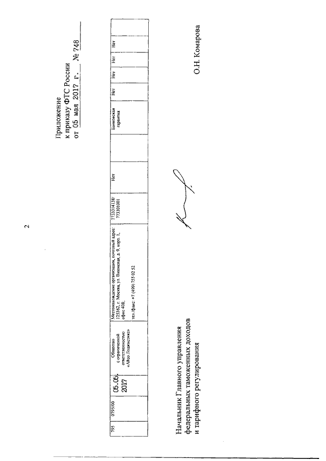 ПРИКАЗ ФТС РФ от 05.05.2017 N 748
