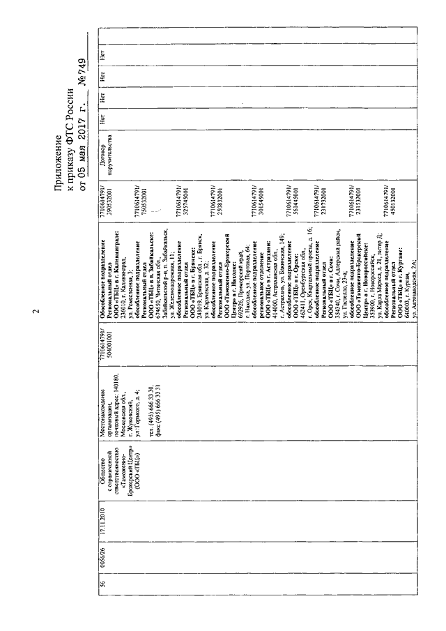 ПРИКАЗ ФТС РФ от 05.05.2017 N 749