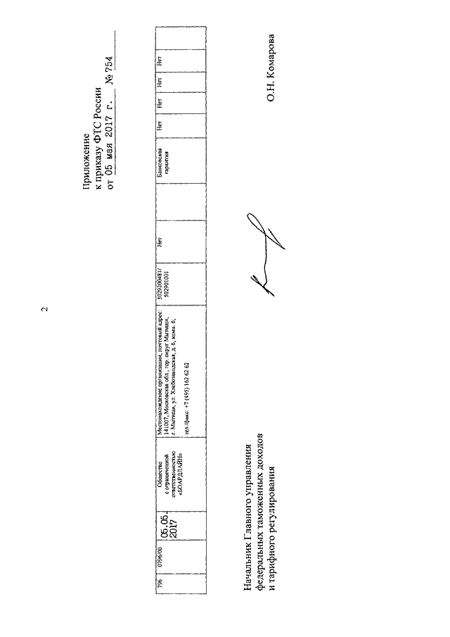 ПРИКАЗ ФТС РФ от 05.05.2017 N 754
