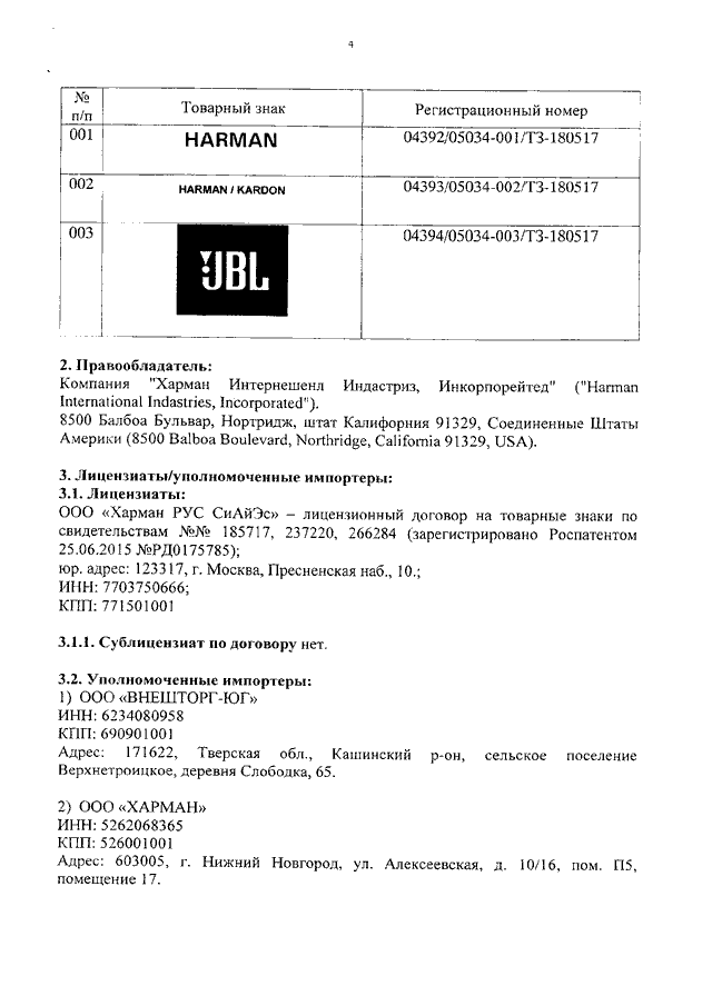 "О ТОВАРНЫХ ЗНАКАХ КОМПАНИИ "ХАРМАН ИНТЕРНЕШНЛ ИНДАСТРИЗ, ИНКОРПОРЕЙТЕД"