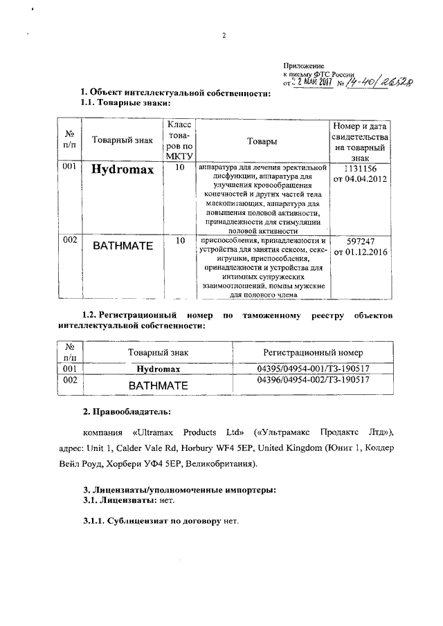 "О ТОВАРНЫХ ЗНАКАХ КОМПАНИИ "ULTRAMAX PRODUCTS LTD"