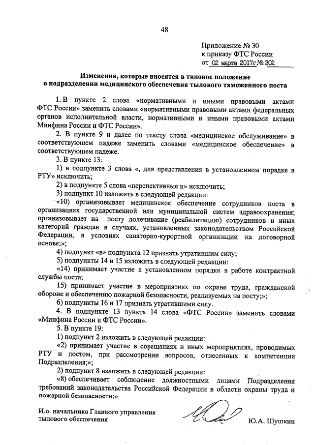 ПРИКАЗ ФТС РФ от 02.03.2017 N 302