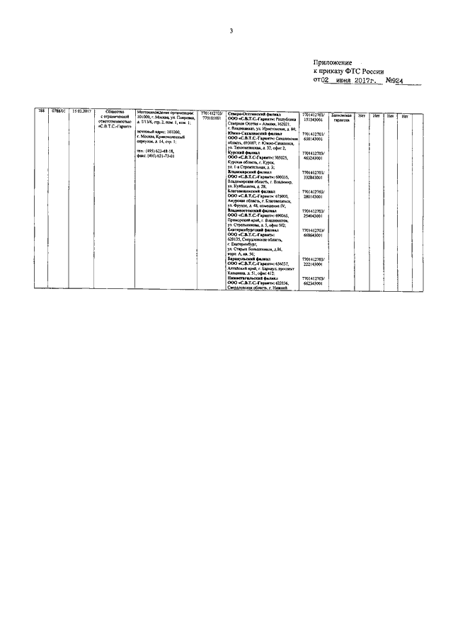 ПРИКАЗ ФТС РФ от 02.06.2017 N 924