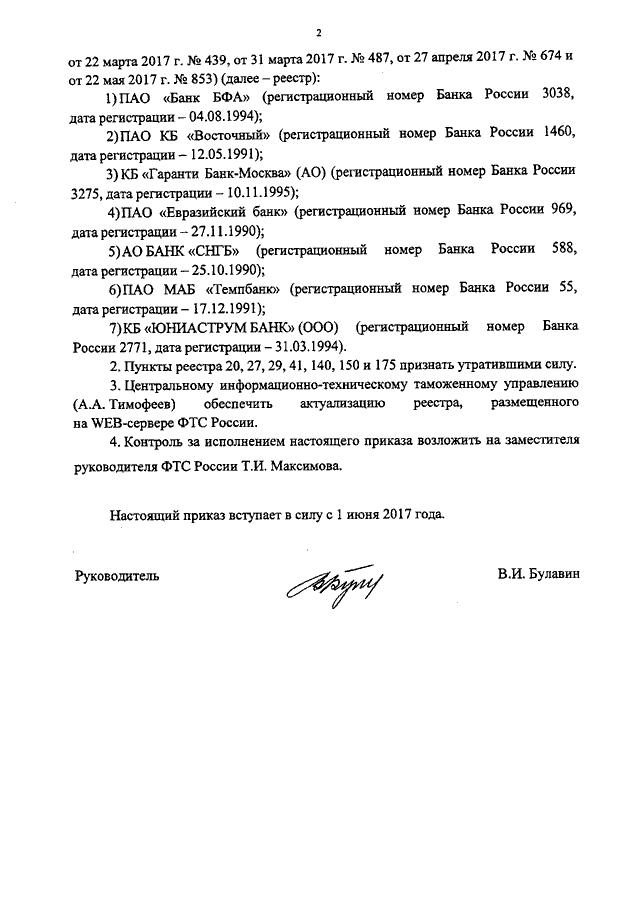 ПРИКАЗ ФТС РФ от 30.05.2017 N 911 "ОБ ИСКЛЮЧЕНИИ ИЗ РЕЕСТРА БАНКОВ, ИНЫХ КРЕДИТНЫХ ОРГАНИЗАЦИЙ,