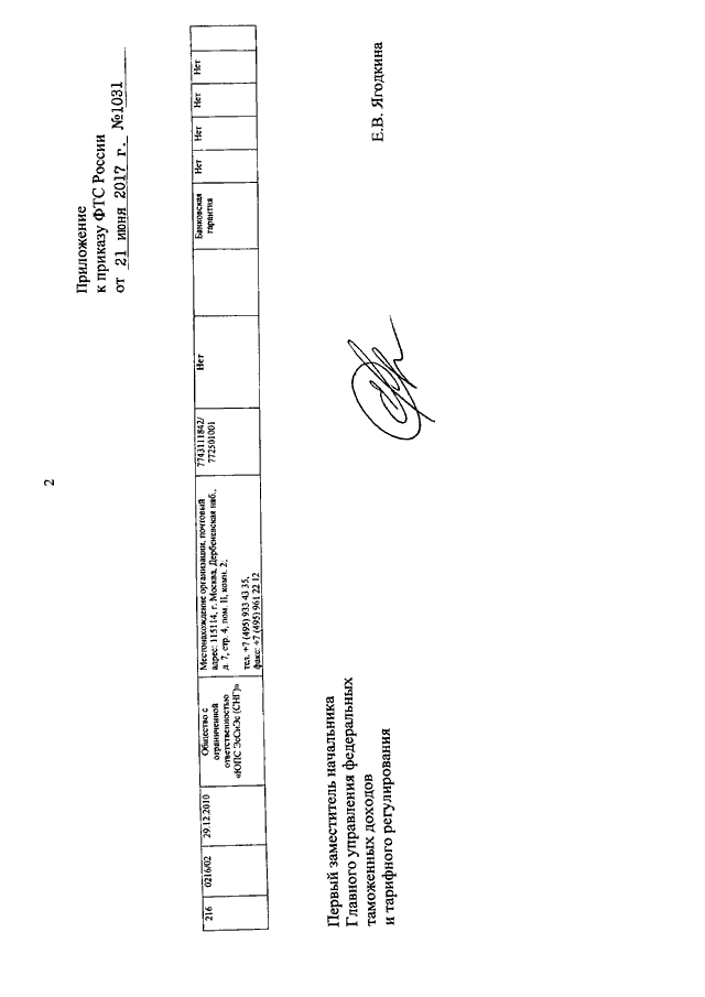 ПРИКАЗ ФТС РФ от 21.06.2017 N 1031