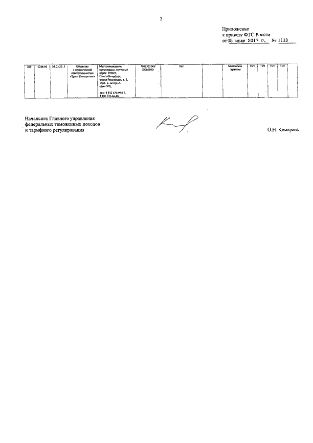 ПРИКАЗ ФТС РФ от 05.07.2017 N 1113
