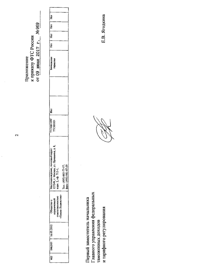 ПРИКАЗ ФТС РФ от 09.06.2017 N 969