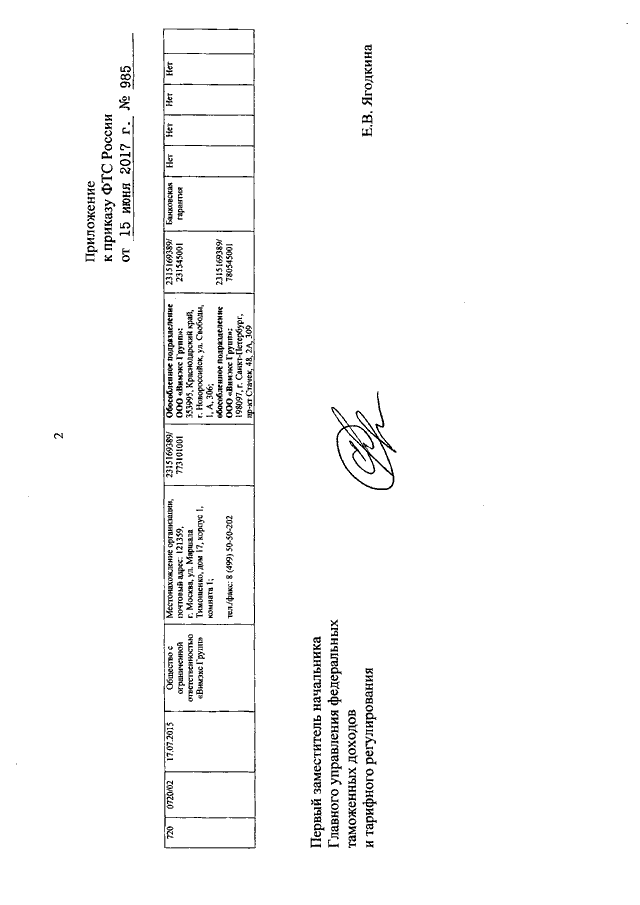 ПРИКАЗ ФТС РФ от 15.06.2017 N 985