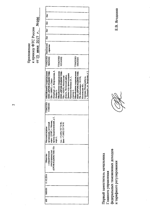 "О ВНЕСЕНИИ ИЗМЕНЕНИЙ В РЕЕСТР ТАМОЖЕННЫХ ПРЕДСТАВИТЕЛЕЙ В ОТНОШЕНИИ ОБЩЕСТВА С ОГРАНИЧЕННОЙ ОТВЕТСТВЕННОСТЬЮ "ПРОФЛОДЖИСТИК-ТБ"
