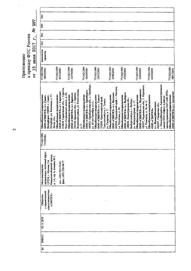 ПРИКАЗ ФТС РФ от 15.06.2017 N 987