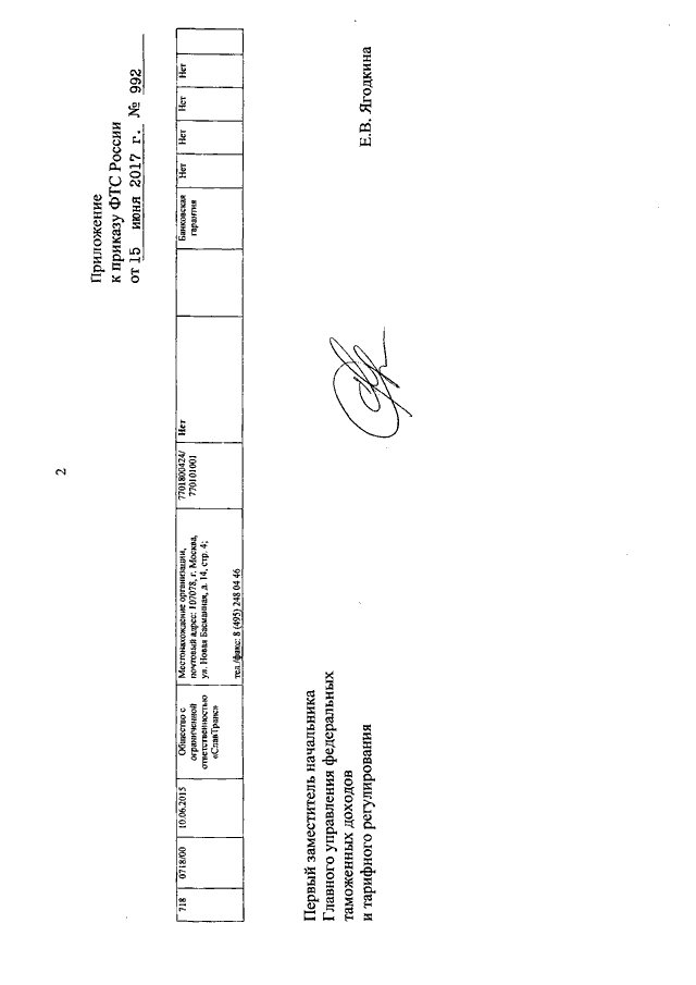 ПРИКАЗ ФТС РФ от 15.06.2017 N 992