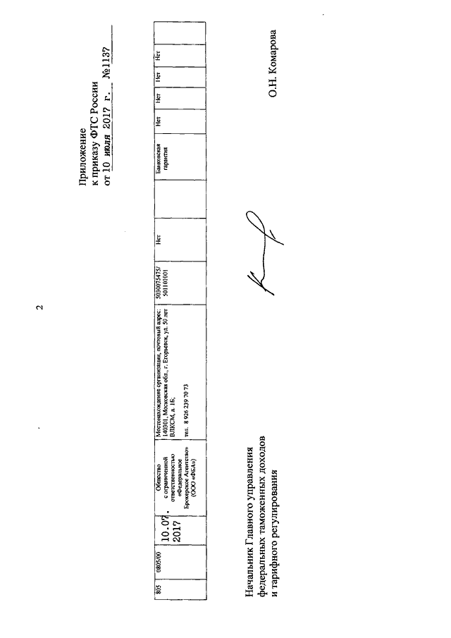 ПРИКАЗ ФТС РФ от 10.07.2017 N 1137