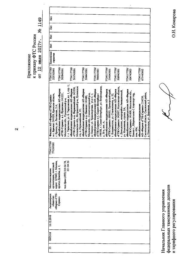 ПРИКАЗ ФТС РФ от 12.07.2017 N 1149
