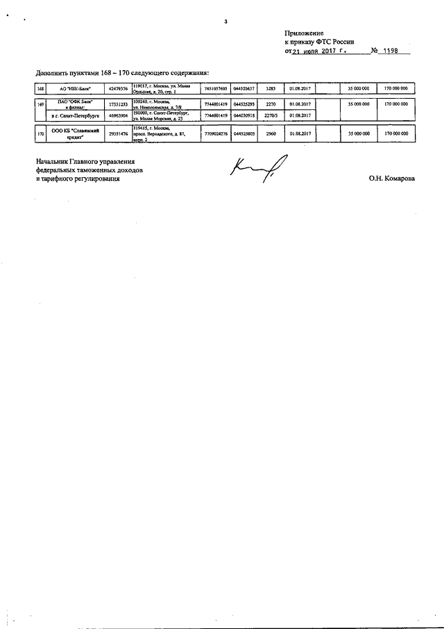 ПРИКАЗ ФТС РФ от 21.07.2017 N 1198