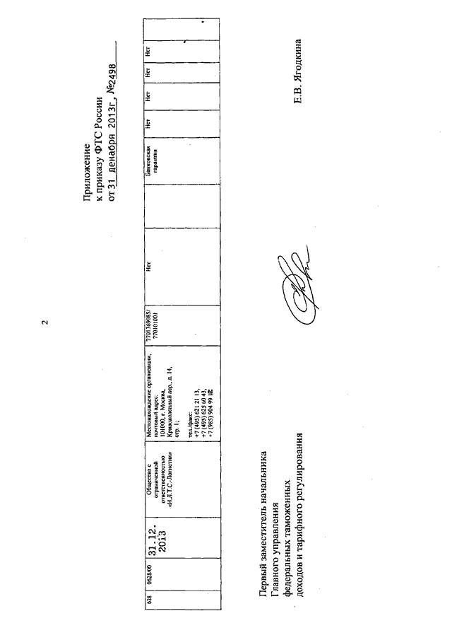 ПРИКАЗ ФТС РФ от 31.12.2013 N 2498
