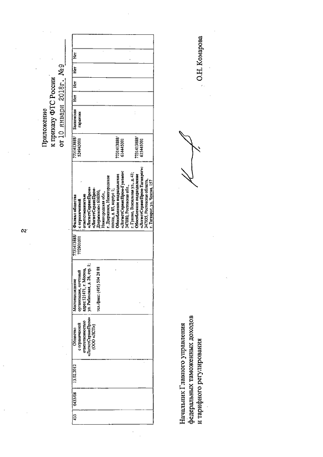 ПРИКАЗ ФТС РФ от 10.01.2018 N 9