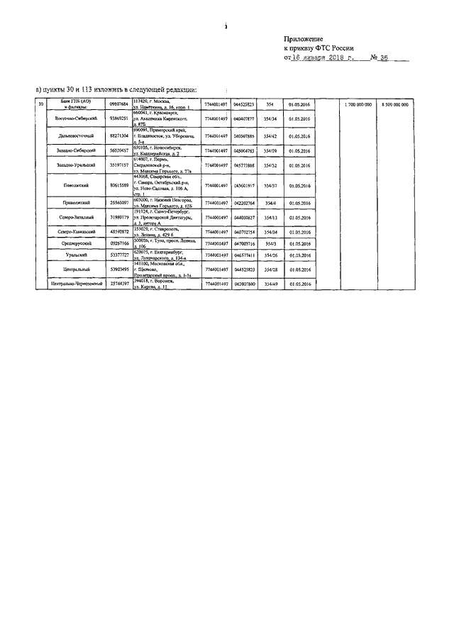 ПРИКАЗ ФТС РФ от 16.01.2018 N 36