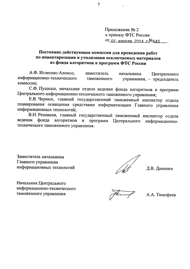 ПРИКАЗ ФТС РФ от 07.04.2014 N 643