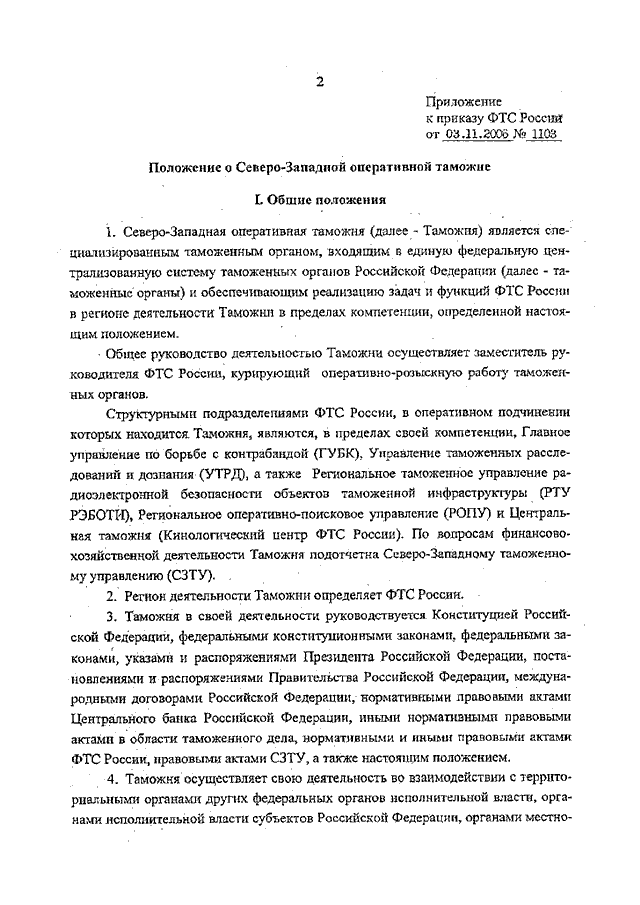 ПРИКАЗ ФТС РФ от 03.11.2006 N 1103