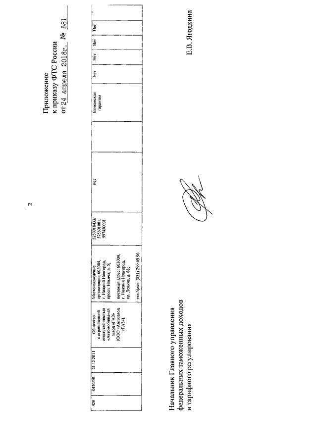 ПРИКАЗ ФТС РФ от 24.04.2018 N 581