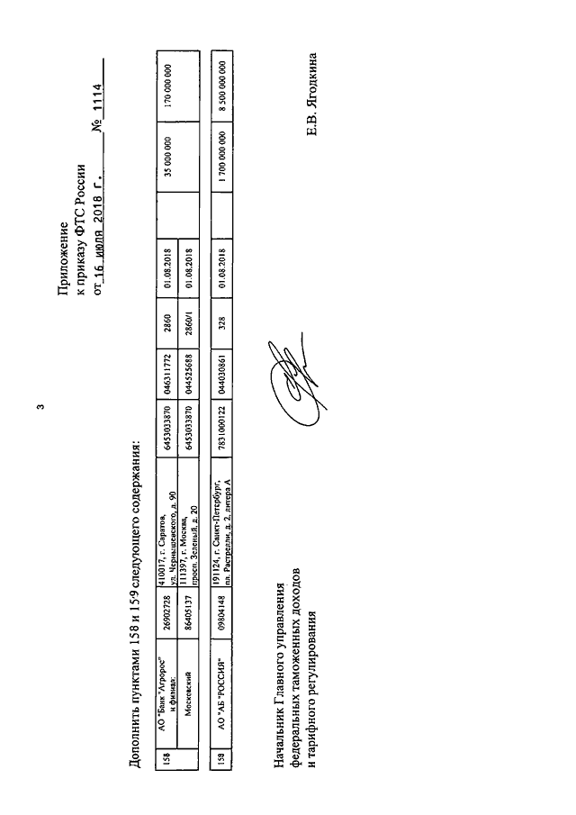 ПРИКАЗ ФТС РФ от 16.07.2018 N 1114