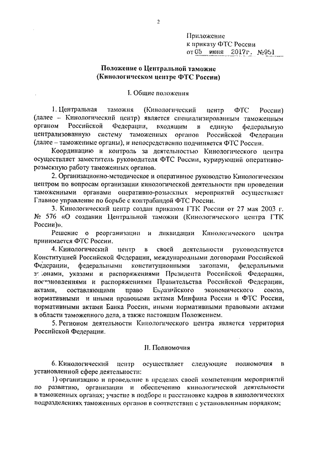 ПРИКАЗ ФТС РФ от 05.06.2017 N 951