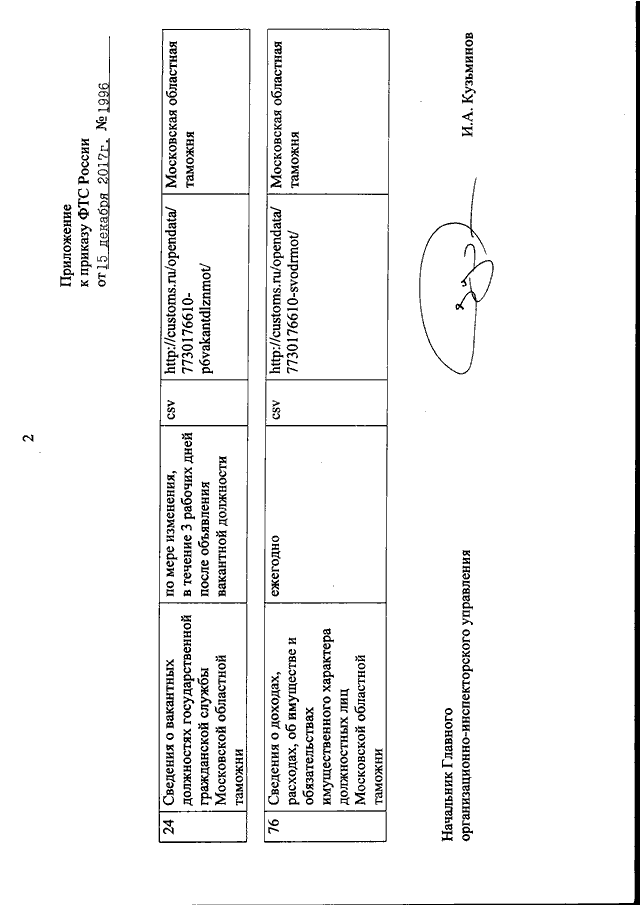 ПРИКАЗ ФТС РФ от 15.12.2017 N 1996