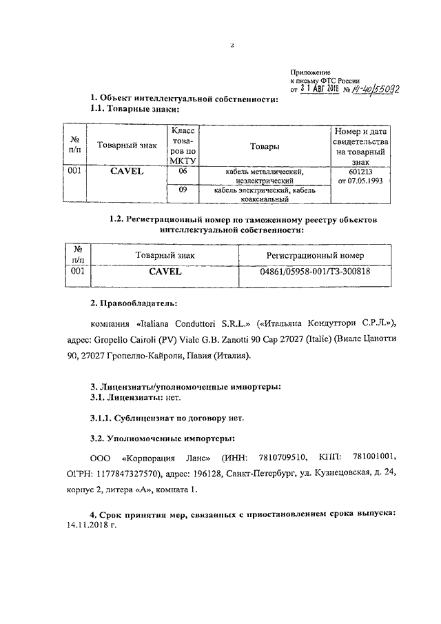 ПИСЬМО ФТС РФ от 31.08.2018 N 14-40/55092
