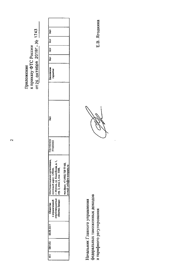 ПРИКАЗ ФТС РФ от 26.10.2018 N 1743