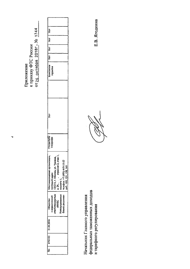 ПРИКАЗ ФТС РФ от 26.10.2018 N 1744