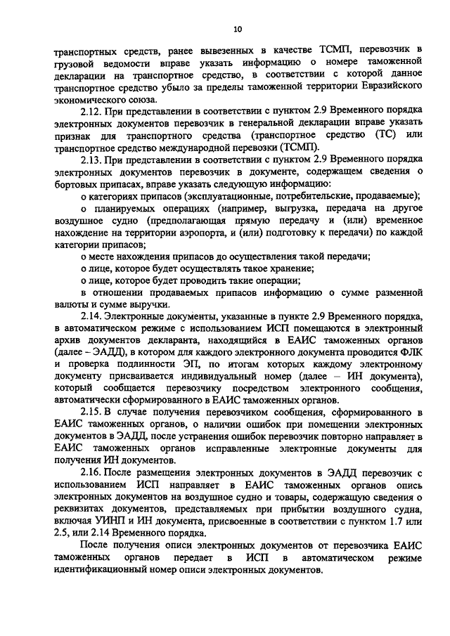 "ОБ УТВЕРЖДЕНИИ ВРЕМЕННОГО ПОРЯДКА СОВЕРШЕНИЯ ТАМОЖЕННЫХ ОПЕРАЦИЙ И ПРОВЕДЕНИЯ ТАМОЖЕННОГО КОНТРОЛЯ В ОТНОШЕНИИ ВОЗДУШНЫХ СУДОВ, ОСУЩЕСТВЛЯЮЩИХ МЕЖДУНАРОДНЫЕ ПЕРЕВОЗКИ ТОВАРОВ, ПОЧТОВЫХ ОТПРАВЛЕНИЙ, БОРТОВЫХ ПРИПАСОВ, ПАССАЖИРОВ И БАГАЖА, В МЕСТАХ ПРИБЫТИЯ, УБЫТИЯ, А ТАКЖЕ В МЕСТАХ СОВЕРШЕНИЯ ПРОМЕЖУТОЧНОЙ, ВЫНУЖДЕННОЙ ПОСАДКИ НА ТАМОЖЕННУЮ ТЕРРИТОРИЮ ЕВРАЗИЙСКОГО ЭКОНОМИЧЕСКОГО СОЮЗА, ПРИ ТАМОЖЕННОМ ДЕКЛАРИРОВАНИИ ВОЗДУШНОГО СУДНА В ЭЛЕКТРОННОЙ ФОРМЕ"