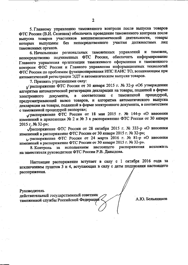 РАСПОРЯЖЕНИЕ ФТС РФ от 08.07.2016 N 191-р