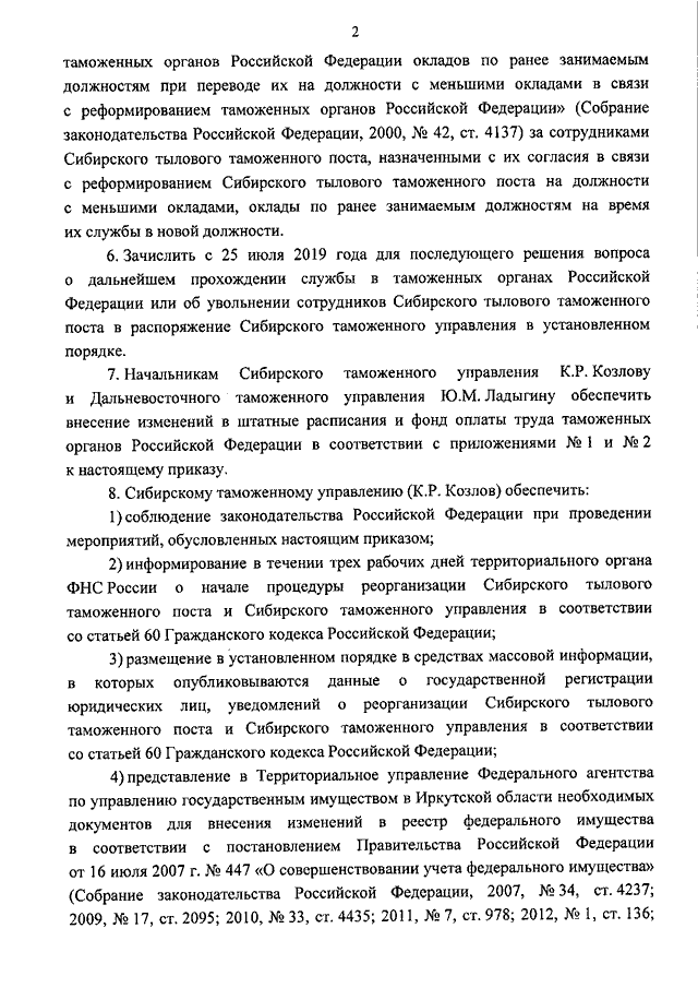 "О РЕОРГАНИЗАЦИИ СИБИРСКОГО ТЫЛОВОГО ТАМОЖЕННОГО ПОСТА И ПРИЗНАНИИ УТРАТИВШИМИ СИЛУ НЕКОТОРЫХ ПРАВОВЫХ АКТОВ ФТС РОССИИ"