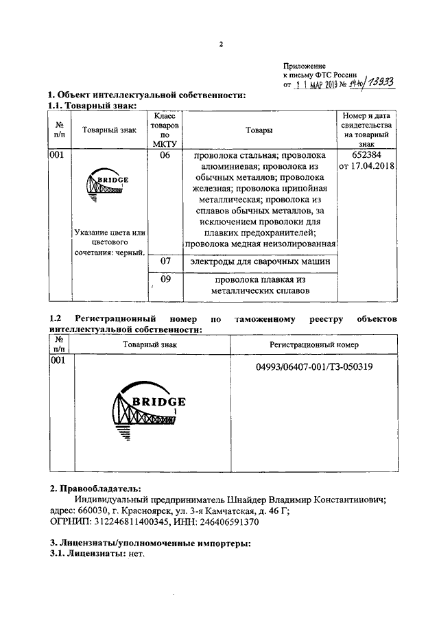 "О ТОВАРНОМ ЗНАКЕ "BRIDGE"