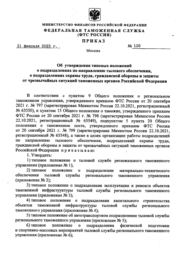 ПРИКАЗ ФТС РФ от 21.02.2023 N 126
