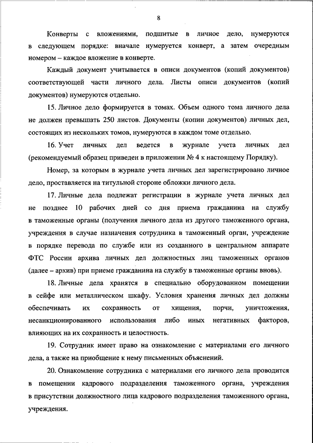 "ОБ УТВЕРЖДЕНИИ ПОРЯДКА ВЕДЕНИЯ ЛИЧНЫХ ДЕЛ СОТРУДНИКОВ ТАМОЖЕННЫХ ОРГАНОВ РОССИЙСКОЙ ФЕДЕРАЦИИ"