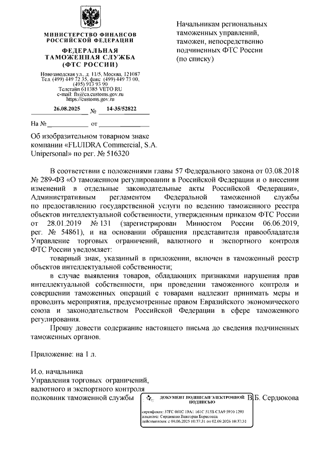 ПИСЬМО ФТС РФ от 26.08.2025 N 14-35/52822
