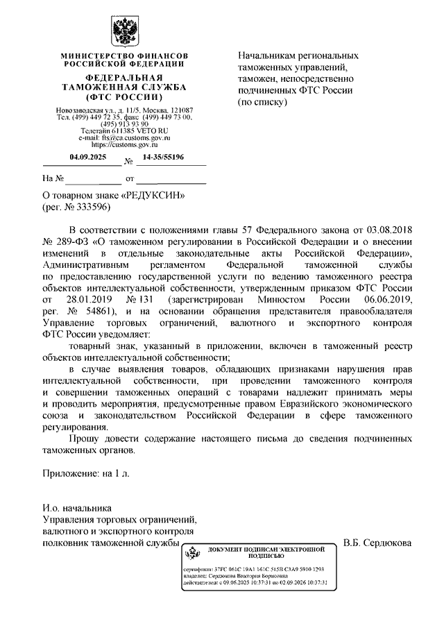 ПИСЬМО ФТС РФ от 04.09.2025 N 14-35/55196