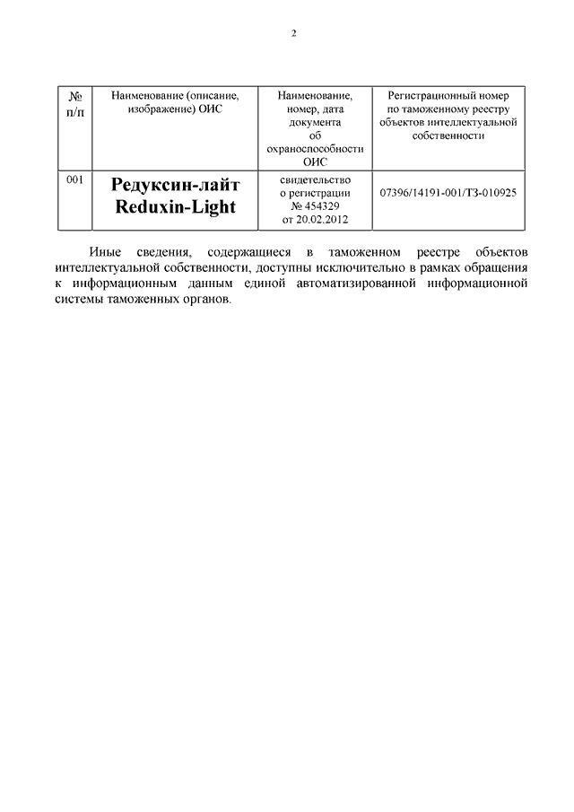 "О ТОВАРНОМ ЗНАКЕ "РЕДУКСИН-ЛАЙТ REDUXIN-LIGHT" (РЕГ. N 454329)"