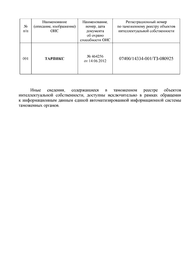 "О ТОВАРНОМ ЗНАКЕ "ТАРПИКС"