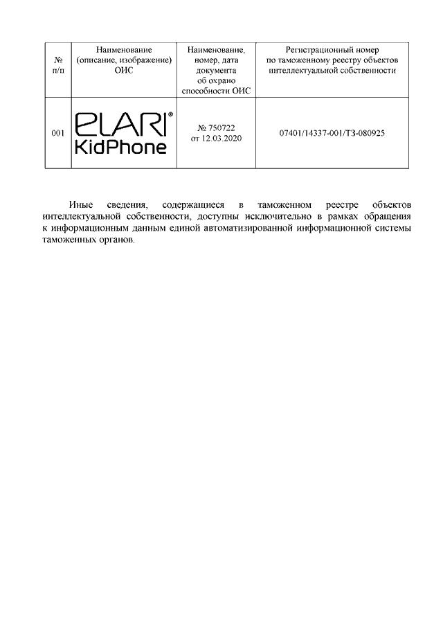 "О ТОВАРНОМ ЗНАКЕ "ELARI KIDPHONE"