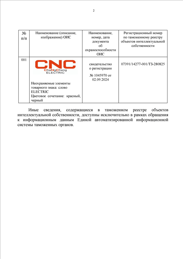 "О ТОВАРНОМ ЗНАКЕ, ПРИНАДЛЕЖАЩЕМ ООО "СиЭнСи Электрик" (N 1045970)"