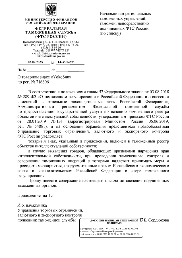 ПИСЬМО ФТС РФ от 02.09.2025 N 14-35/54671